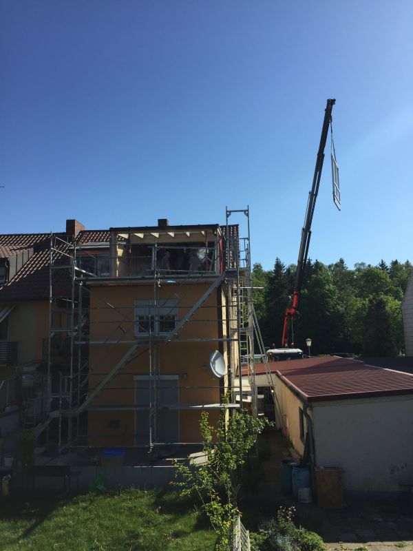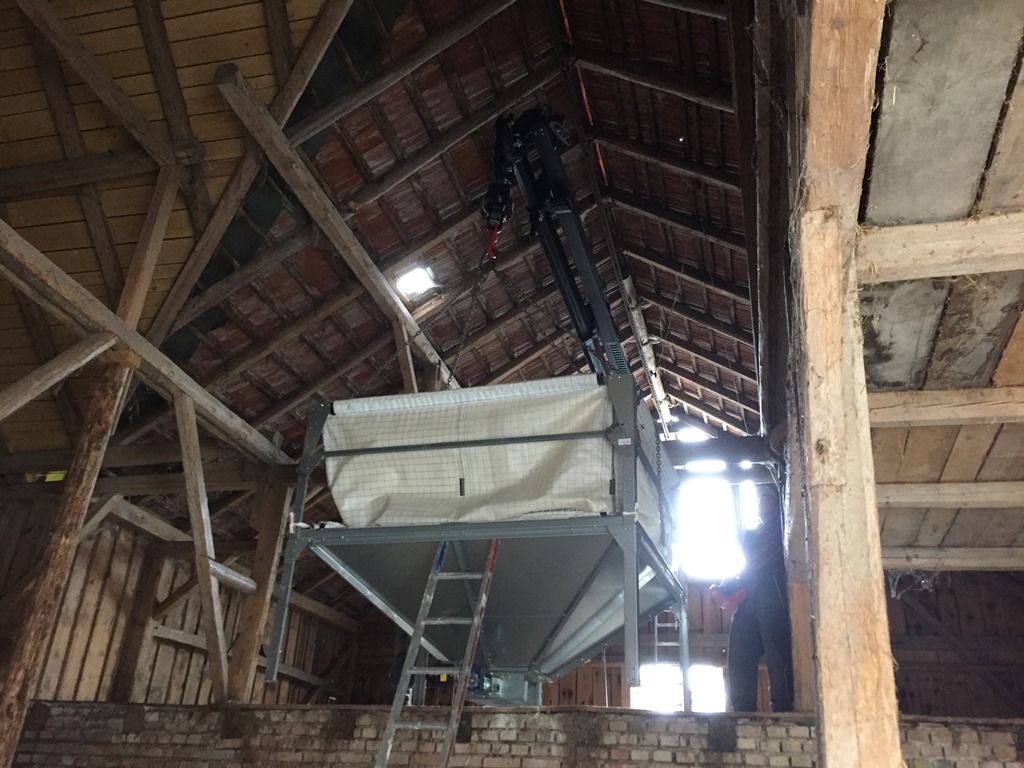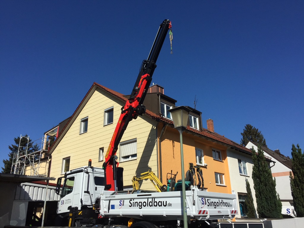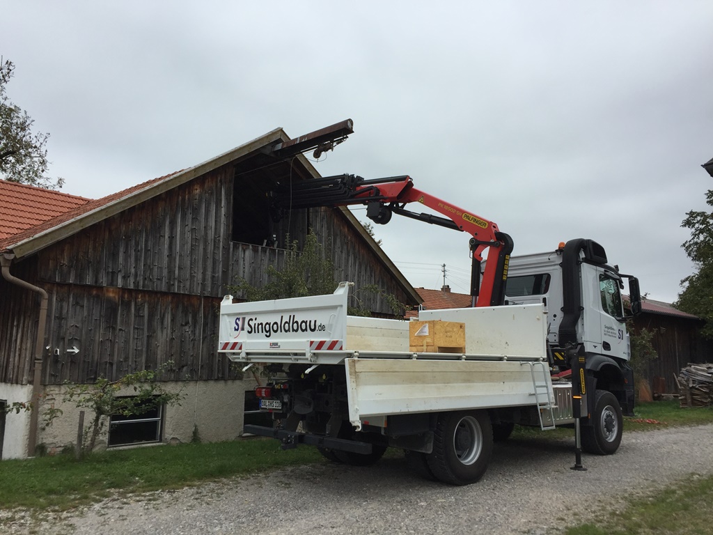 Auch unser Autokran hilft bei Lieferungen an schwierigen kaum zugänglichen Stellen.